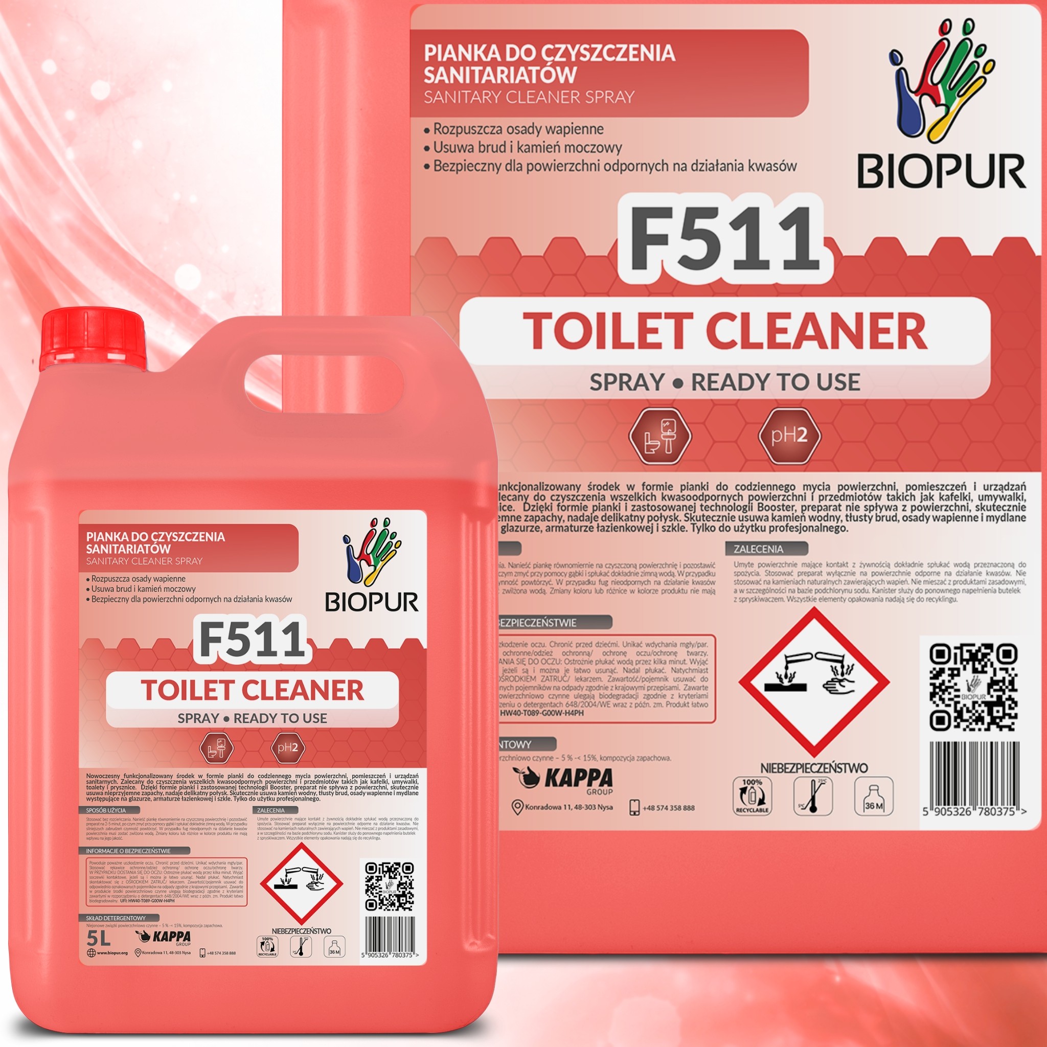 BIOPUR F511 5L kanister – profesjonalny środek do czyszczenia łazienki i sanitariatów