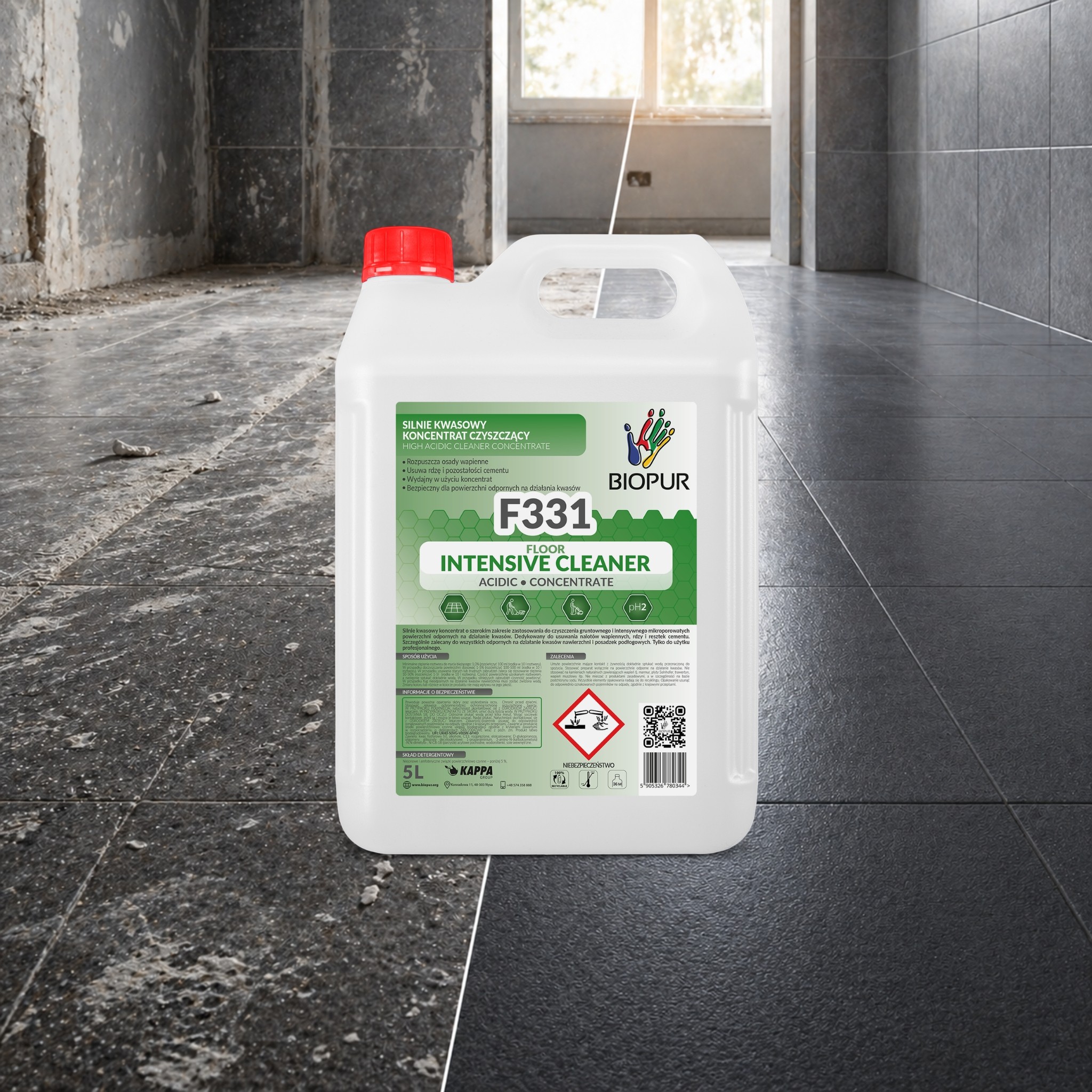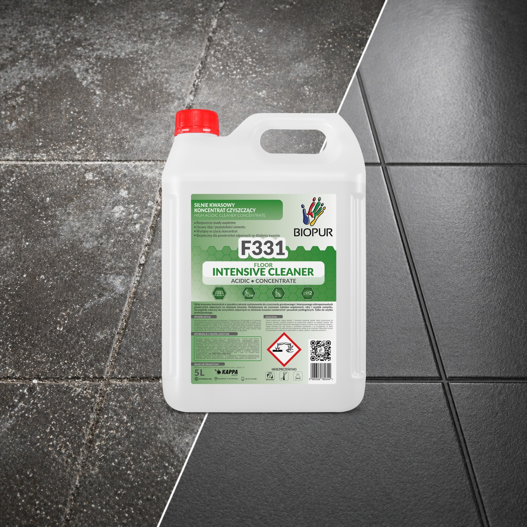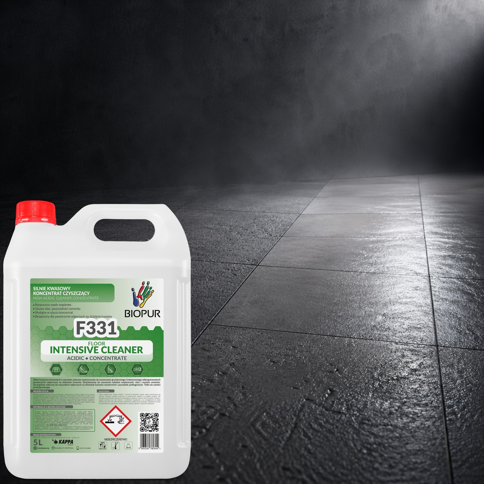 Biopur F331 w kanistrze 5L to wydajny, profesjonalny preparat kwasowy przeznaczony do intensywnego doczyszczania podłóg ceramicznych i powierzchni odpornych na działanie kwasów.