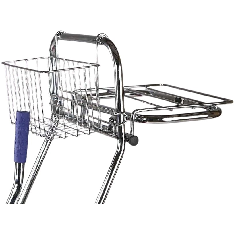 Całość osadzona jest na stelażu metalowym chromowanym, który gwarantuje trwałość, stabilność i odporność na intensywne użytkowanie. Gumowane kółka zapewniają cichą i lekką jazdę, nawet po dużych powierzchniach.