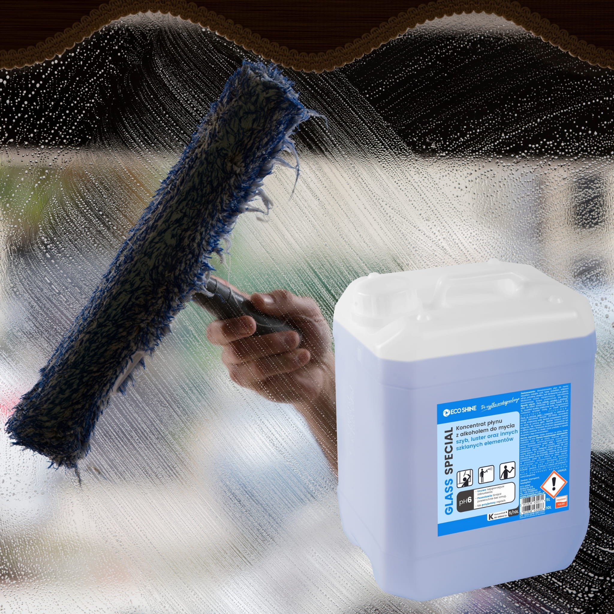 Eco Shine GLASS SPECIAL 5L to profesjonalny koncentrat z alkoholem do mycia szyb, szkła i powierzchni błyszczących, stworzony z myślą o intensywnym, ekonomicznym użytkowaniu.