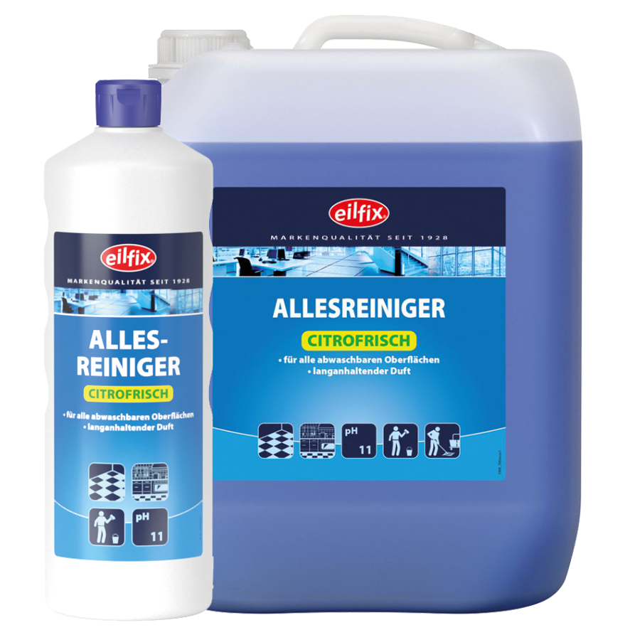 Eilfix ALLESREINIGER CITRO 1L to wydajny, uniwersalny płyn czyszczący przeznaczony do codziennego użytku. Doskonale sprawdza się w myciu podłóg oraz wodoodpornych powierzchni, zarówno w domu, jak i w obiektach komercyjnych.
