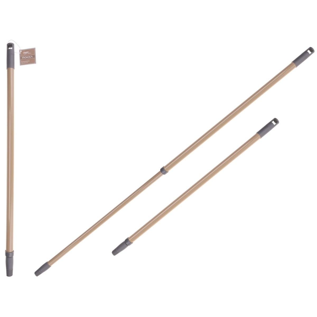 Stylowy odcień mokki (jasnobrązowy) w połączeniu z szarymi wykończeniami sprawia, że kij teleskopowy prezentuje się nowocześnie i estetycznie, idealnie pasując do profesjonalnych akcesoriów sprzątających.