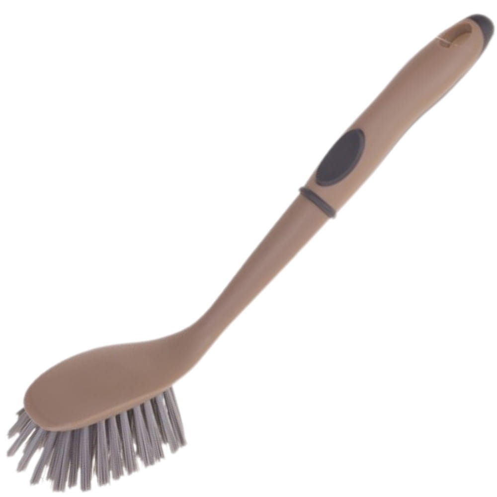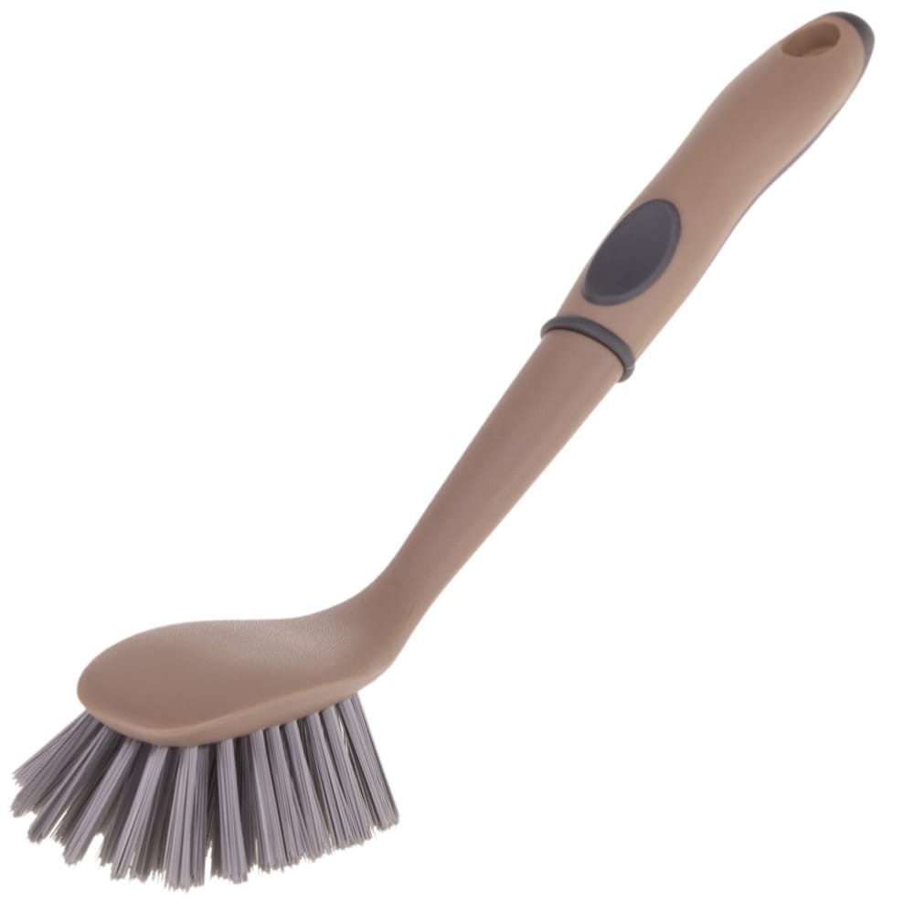 Brązowy trzonek w odcieniu mokka połączony z szarymi elementami sprawia, że szczotka prezentuje się elegancko i nowocześnie. To idealny wybór do kuchni, w której liczy się zarówno funkcjonalność, jak i estetyka.