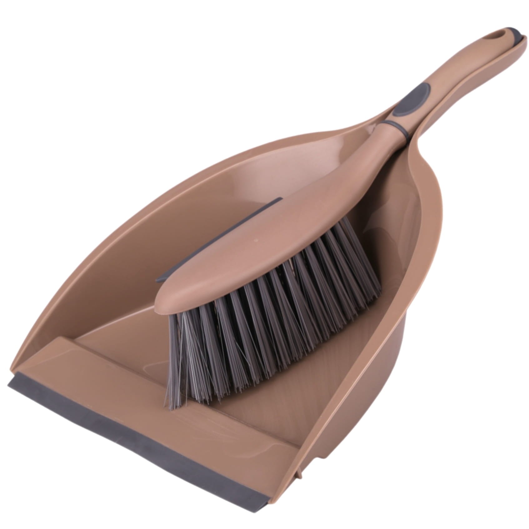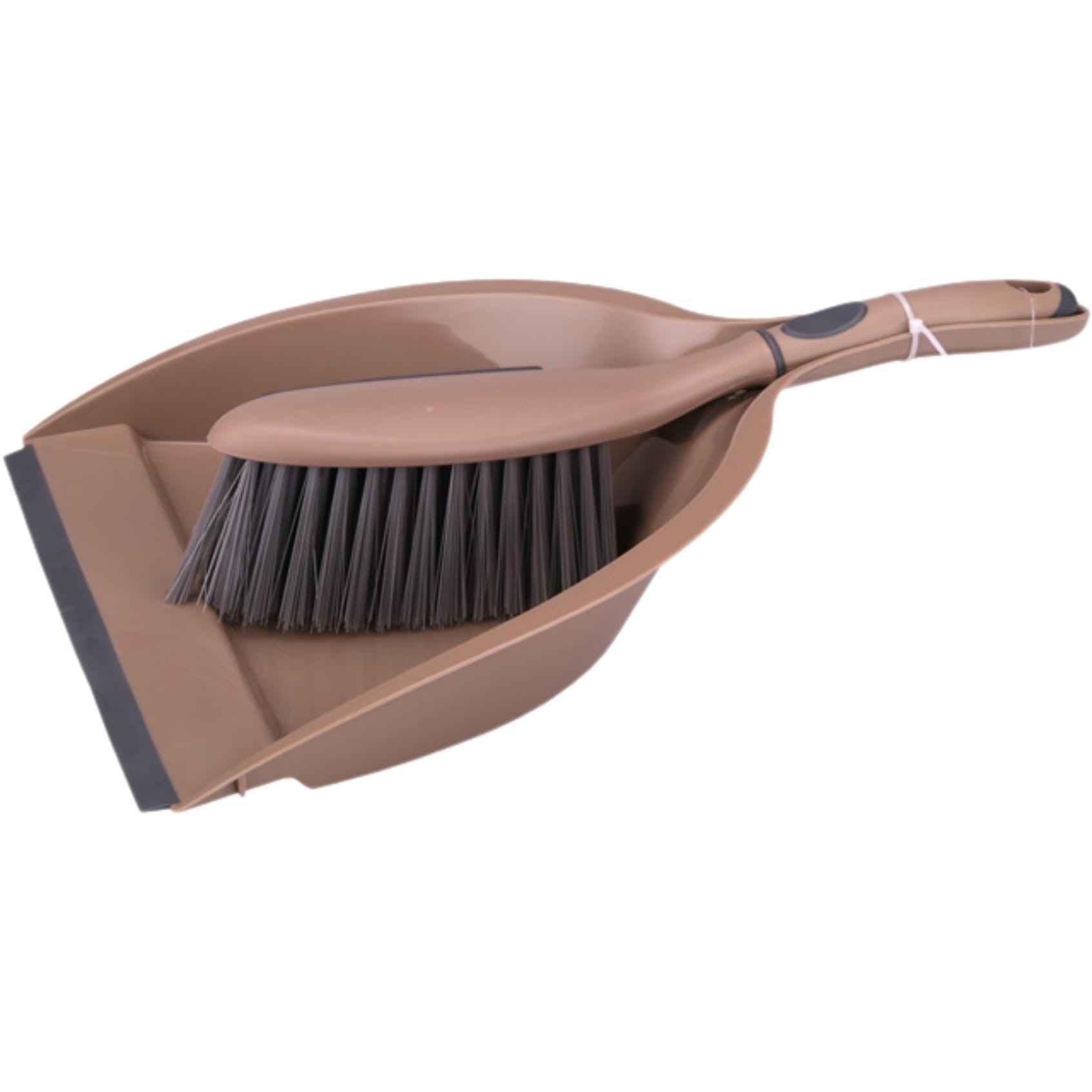 Szufelka w kolorze mokki (brązowy odcień) została wyposażona w gumową krawędź, która idealnie przylega do podłoża. Dzięki temu nawet najmniejsze drobinki łatwo zsuwają się do środka, bez konieczności wielokrotnego zamiatania.