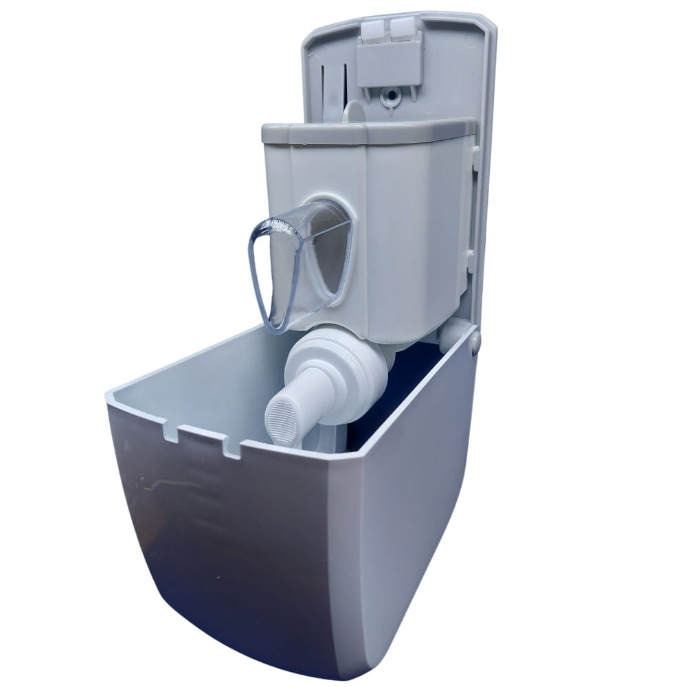 Trwały i niezawodny dozownik wykonany z tworzywa ABS w kolorze białym z szarymi akcentami.