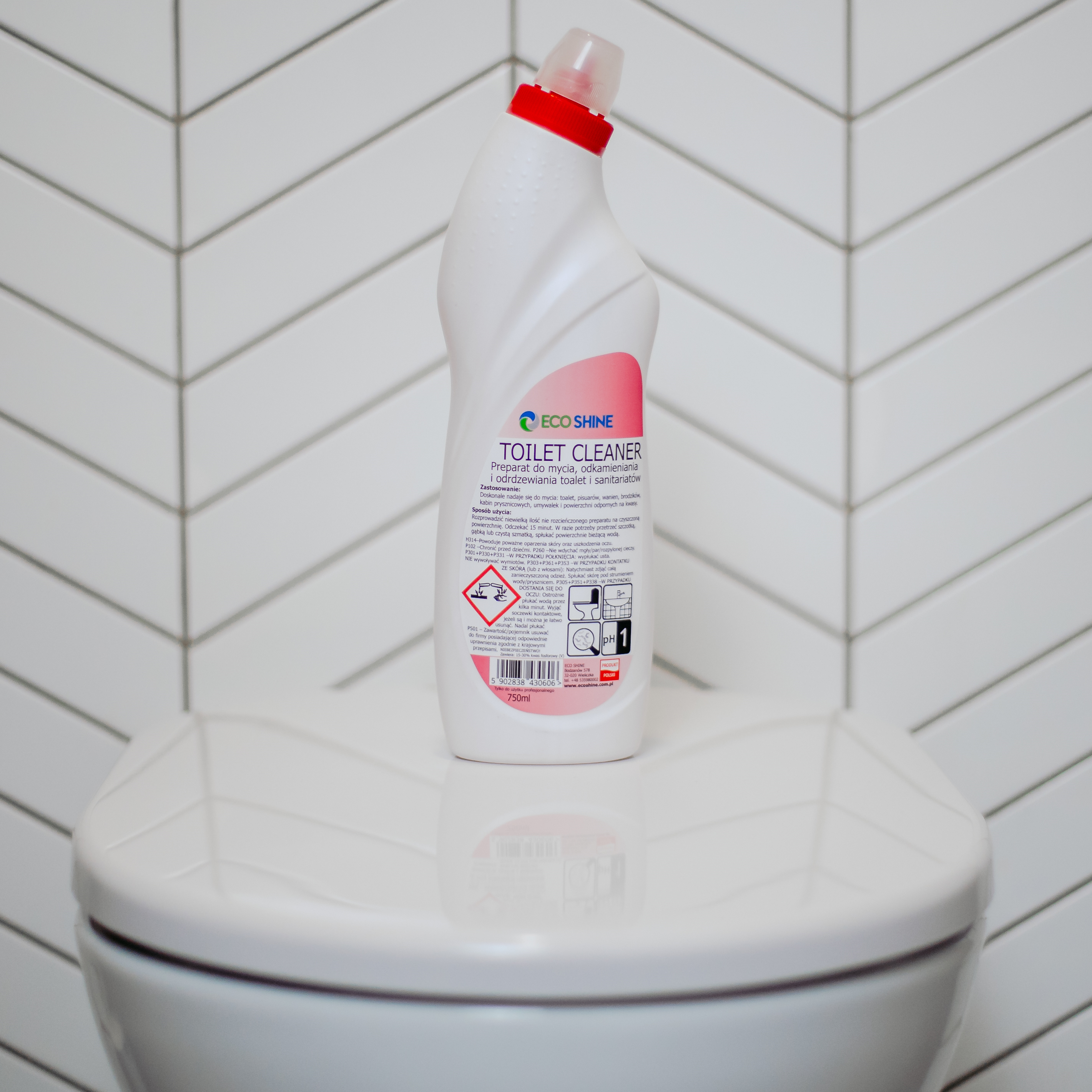 Eco Shine TOILET CLEANER to skuteczny, zagęszczony preparat przeznaczony do codziennego czyszczenia i odkamieniania toalet, pisuarów, wanien oraz brodzików.
