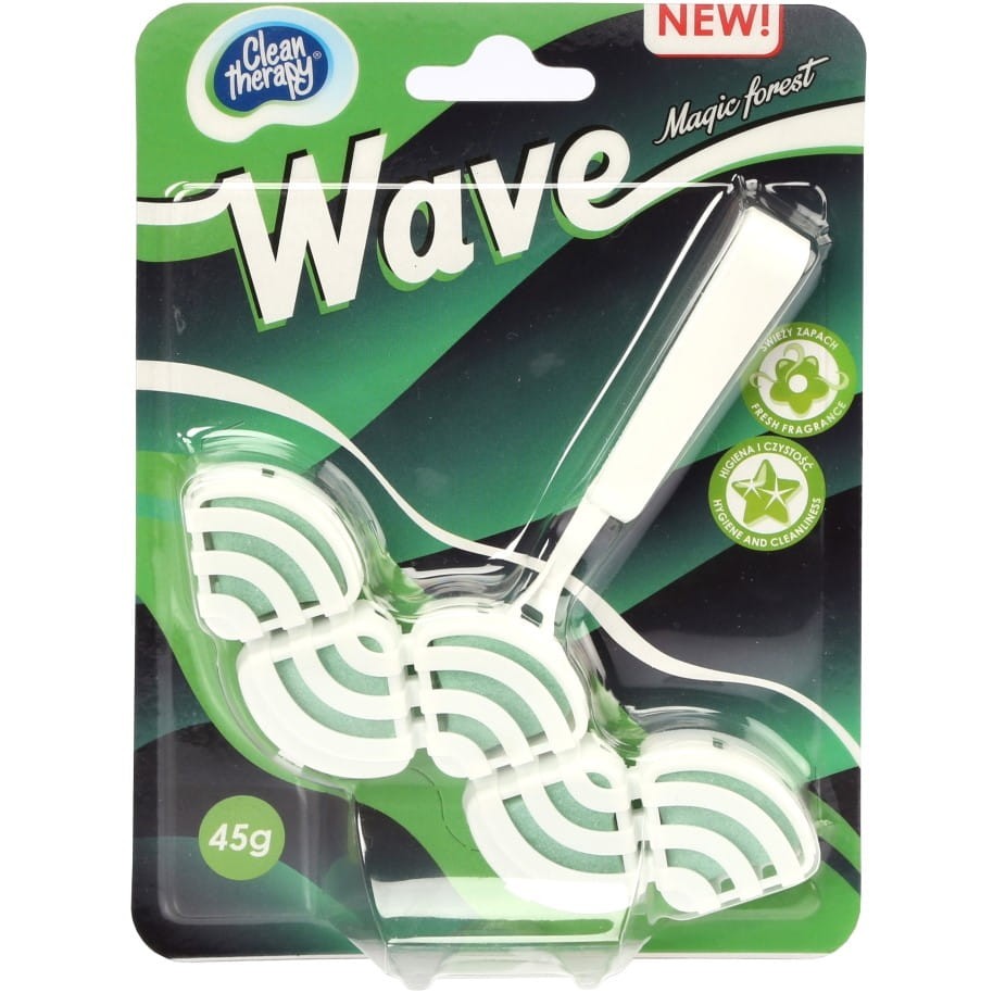 Kostka toaletowa WAVE Magic Forest łączy skuteczne działanie czyszczące i odświeżające z eleganckim, falistym designem. Chroni przed osadzaniem się kamienia, tworzy gęstą, aktywną pianę i wypełnia łazienkę długotrwałym, odświeżającym aromatem iglastego lasu.
