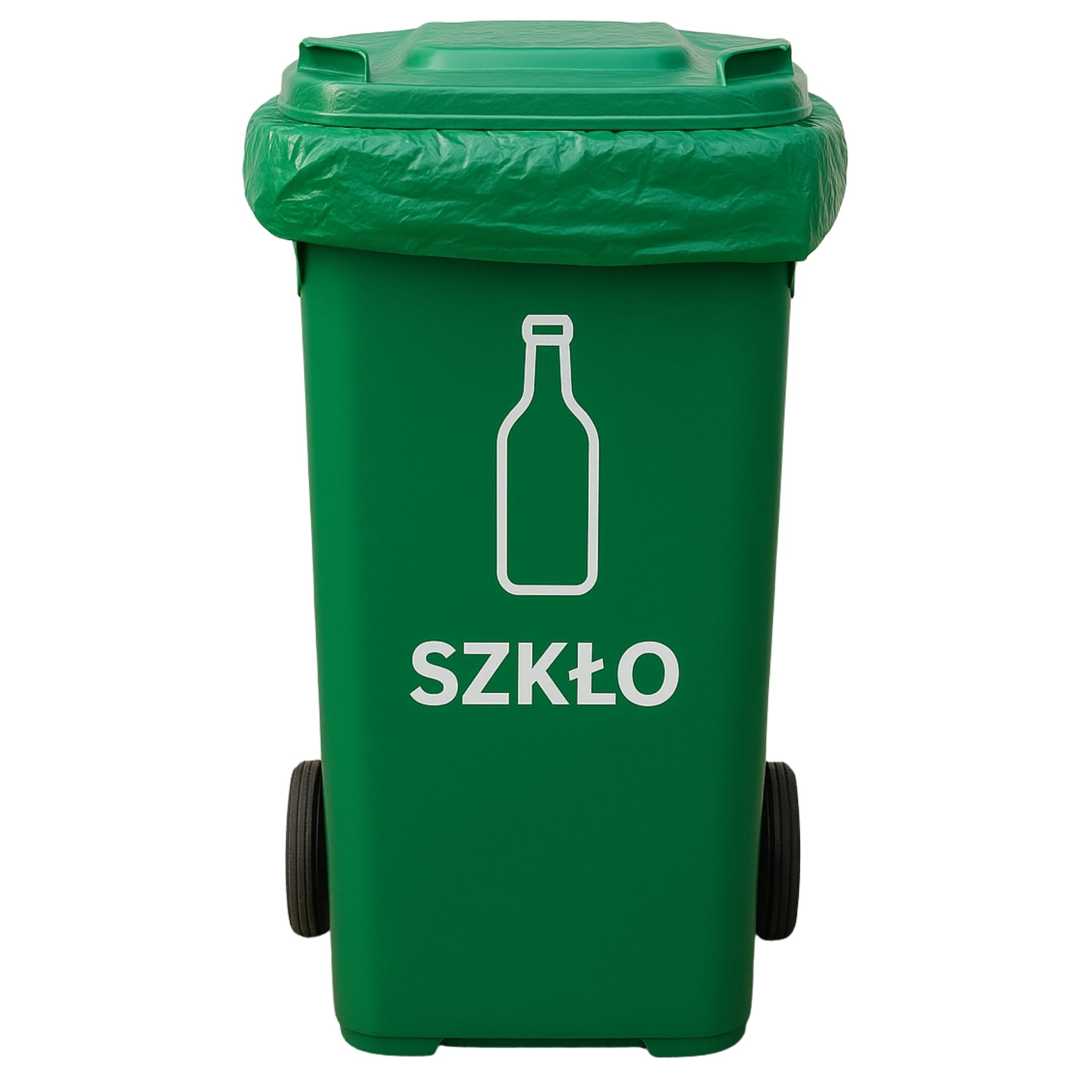 Zielony kolor jednoznacznie wskazuje frakcję szkła, co ułatwia selektywną zbiórkę odpadów.